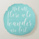 Niedliches und skurriles Zitat-Kissen mit weißer moderner Kalligraphie und Polka-Punktmuster. Dieses Design ist in verschiedenen Produkten und Farben erhältlich. "Nicht alle, die wandern, sind verloren."