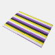 Die nichtbinäre Flagge wurde 2014 von Kye Rowan, dem Aktivisten, erstellt. Jede Streifen-Farbe repräsentiert verschiedene Arten nichtbinärer Identitäten: Gelb für Menschen, die sich außerhalb des Geschlechts binär identifizieren, weiß für nichtbinäre Menschen mit mehreren Geschlechtern, lila für solche mit einer Mischung aus männlichen und weiblichen Geschlechtern, schwarz für alternde Individuen.