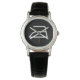 Uhr, Klassische Damenuhr mit schwarzen Lederarmband