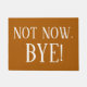 Eine andere lustige unhöfliche Fußmatte, die "NICHT JETZT sagt. TSCHÜSS!" gedruckt in den enormen weißen Buchstaben auf einem Karamellfarbhintergrund. Vervollkommnen Sie, um nervtötende uneingeladene Leute weg zu behalten.