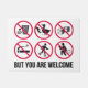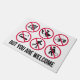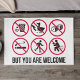Fußbodenmatte in Rot und Schwarz. Hier ist nicht viel erlaubt, aber Sie sind willkommen.