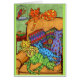 Diese fünf farbenfrohen Katzen haben sich auf ihrem Lieblings-braunen Stuhl für ihr tägliches Nickerchen am Nachmittag versammelt. Alle Zimmer sind schallgedämmt, einige von ihnen ruhen auf bunten Kissen, jedes in seiner eigenen bevorzugten Schlafposition. Die braune Maus schläft in einer Schüssel auf einem kleinen Tisch in der Nähe mit ihrem eigenen kleinen Kissen. Über dem Nickerchen schließt sich auch der Familienvogel an.