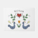 Fußmatte mit einem von Hand gezeichneten Bild in der Pennsylvania-Holländerart. Der Text kann geändert werden, wenn Sie eine andere Mitteilung oder sogar Ihren Familiennamen auf der Fußmatte möchten
