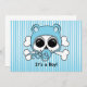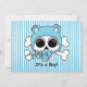 Niedlicher Babyschädel und Kreuzknochen mit blauer Hut und Schnuller.