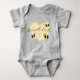 Ein niedlicher Baby-Bodysuit mit pastellgelbem Wabenherz und hübschen Bildern von kleinen Bienen mit Blume-Kronen. Die skurrile Typografie kann mit dem Namen des Babys oder Ihrer eigenen Botschaft personalisiert werden.