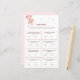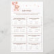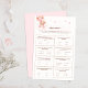 Fügen Sie Ihrer Babydusche eine Touch Spaß und Spannung hinzu mit unserem "Niedlichen Bären & Pink Balloons Baby Shower Trivia Game". Dieses zauberhafte Spielblatt zeigt einen zauberhaften Teddybär, der zwischen rosafarbenen Ballons in einem skurrilen Himmel schwebt und einen reizvollen Rahmen für Ihre kleine Mädchenfeier schafft. Die Gäste werden sich freuen, ihr Wissen mit einer Vielzahl von Baby-bezogenen Trivialfragen auszuprobieren, was dieses Spiel zu einem perfekten Eisbrecher und unterhaltsamer Aktivität macht. Die weiche rosa Farbpalette und das spielerische Design sorgen dafür, dass Ihr Babyduschthema perfekt ergänzt wird. Dieses mit Liebe zum Detail gestaltete Trivialspiel bietet Unterhaltung und einen unvergesslichen Sake für Ihre Gäste. Machen Sie Ihre Babydusche zu einem unvergesslichen Erlebnis mit diesem lustigen und fesselnden Trivialspiel, das Ihrer Feier eine Touch von Süße und Freude verleiht.