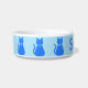 Diese phantastische Katzenschale zeigt ein digitales Kunstbild einer niedlichen blauen Katze mit einem geschmeidigen Schwanz. Seine Augen sind blass blau mit schwarzen Schülern. Er trägt einen rosa Bogen im Haar und einen leuchtenden blauen Kragen um den Hals mit einem blauen Jeton darauf. Es gibt einen benutzerdefinierten Text, sodass Sie den Namen der Katze angeben können.