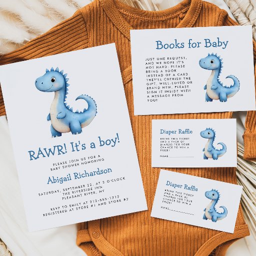 Cute Blue Watercolor Dinosaur Boy Baby ShowerDesignt von Akhates Designs