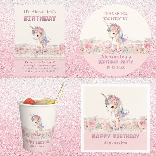 Passen Sie dieses bezaubernde Niedliche Einhorn-Geburtstagspapier Napkin an und fügen Sie Ihrer kleinen Girl's Birthday Party eine Touch Launen hinzu. Diese Servietten sind so konzipiert, dass sie kleine Mädchen erfreuen und eine Atmosphäre der Freude und des Staunens schaffen. Der weiche und elegante rosafarbene Hintergrund, mit zarten Shabby Chic Florals und rosa Glitzer Letters geschmückt, Set für eine zauberhafte Feier.