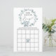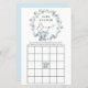 Niedliches Bingo-Duschspiel mit "Baby-Duschbingo" in einfacher Typografie und einem stilvollen Drehbuch mit einem Herzschlag und einer Aquarellfarbe pastellblauer Elefant in einem Kranz eukalyptus-Grün.
