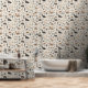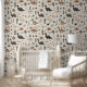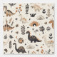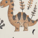 Diese Tapete ist perfekt für ein Baby- oder Kinderzimmer geeignet und bietet eine Vielzahl an niedlichen Dinosauriern in einem sich wiederholenden Muster, mit boho-artigen Blätter und Regenbogen. Die vorherrschenden Farben sind braun und braun, auf einem cremefarbenen Hintergrund platziert.