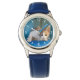 Kinderuhr aus Edelstahl mit blauem Lederarmband