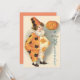 Gib diesem Halloween neben deinem Trick eine Leckerei. Dieser Ausdruck zeigt einen niedlichen Clown, der einen lächelnden Jack oder eine Laterne anschaut.