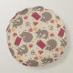 Meine eigene Hand zeichnet illustrierte Muster. Alle nötigen Favoriten für einen gemütlichen Abend in der Nacht; ein gutes Buch, Tasse von Kakao, Süßigkeiten, Kekse und Kuchen schmücken ein knackiges runder Kissen.