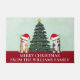 Diese wunderschönen Pembroke Walisisch Corgi Hunde haben ihre Köpfe in einem niedlichen Hut des Weihnachtsmanns gekippt. Die beiden Jungtiere sitzen vor einem hübschen Weihnachtsbaum auf diesem lustigen, individuell gestaltbaren Urlaubstor. Ein hübscher Korgis begrüßt die Türmatte mit einem wunderschönen zeichn einer Trikolon und einem rot-weißen Korgi.