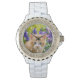 Ein schönes Kätzchen auf einem Felsen in einem blühenden Garten. Eine niedliche junge, rottabby Babykatze mit wunderschönen blauen Augen, Foto von Katho Menden aufgenommen. Diese Kristall-Uhr für Frauen mit Wählplatte ist eine Geschenkidee für Katzen- und Haustierfreunde. http://www.zazzle.com/kathom_photo - Wenn Sie ein Design sehen, das nicht auf Ihrem gewünschten Produkt erhältlich ist, zögern Sie bitte nicht, mich über meinen Shop zu kontaktieren und ich werde Ihnen gerne das Produkt für Sie erstellen.