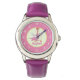 Uhr, Kinderuhr aus Edelstahl mit rosa Lederarmband