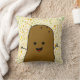 Eine bezaubernde, niedliche, braune Cartoon-Kartoffel mit kleinen schwarzen Augenpunkten, Armen, die von beiden Seiten seines Körpers ausrasten, und einem großen, fröhlichen Lächeln. Der Hintergrund ist eine cremefarbene Farbe mit herbstfarbenen Wasserfarben.