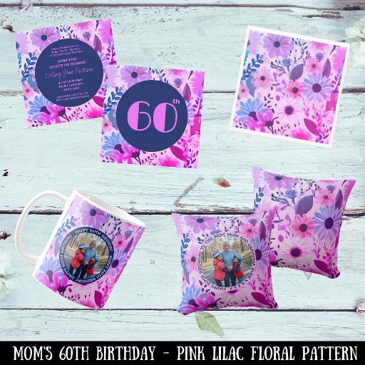 Mom's 60th Birthday - Pink Lilac Floral PatternDesignt von Sue McGuinness