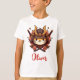 Dieser personalisierte T - Shirt von Kawaii-Kindern zeichnet sich durch eine niedliche Katze aus, die in einem kleinen, goldenen Samurai-Helm geschmückt ist. Seine Rundaugen funkeln mit Entschlossenheit. Überkreuzte Katanen, mit niedlichen Pfotendrucken geschmückt, Erholung anmutig hinter der Katze und vervollständigt das fette Bild.