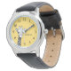 Uhr, Vintage Männeruhr mit schwarzem Lederarmband