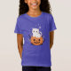 Adorable Girl's feines Jersey T - Shirt Design mit einer niedlichen Abbildung einer weißen Katze sitzend auf einem Halloween Kürbis, umgeben von Blätter und Sternen. Dieser weiche und komfortable T - Shirt ist perfekt für die Halloween-Feiern Ihres Kleinen geeignet und verbindet festlichen Charme mit spielerischen Designelementen. Der Halloween Cat Fine-Jersey-T - Shirt fügt jedem Halloween-Outfit eine lustige und stilvolle Touch hinzu, und ist somit eine ideale Wahl für junge Mädchen.