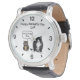Uhr, Vintage Männeruhr mit schwarzem Lederarmband