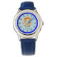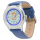 Kinderuhr aus Edelstahl mit blauem Lederarmband