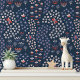 Niedlich Moderne Blume Butterfly Blue White Pattern Peel and Stick Wallpaper zeigt ein Blumenmuster von niedlichen weißen und roten Blume mit Schmetterlingen und Libellen auf blauem Hintergrund. Ideal für Wohngestaltung, Bäder, Wandakzente und Pflegebehandlungen, Büroeinrichtung und Party. Erstellt von Evco Studio www.zazzle.com/store/evcostudio