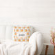 Personalisiertes Kissen illustriert mit einem sich wiederholenden Muster einer Aquarellbild eines orangefarbenen Kürbis, der mit farbenfrohen Herbstlauben und Sprigs dekoriert ist.
