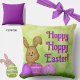 Mit diesem niedlichen, farbenfrohen Osterkissen mit einem süß lächelnden Cartoon Hasen und lila Eiern auf grasgrünem Hintergrund zaubern Sie in der Saison die Eierstra. Text auf Kissen lautet "Hoppy Hoppy Oaster!", kann aber mit einer Nachricht Ihrer Wahl angepasst werden. Dieses Kissen ist ein charmanter Frühlingsakzent für Kinderzimmer oder Kindergärten und wird Ihre Zuhause mit Sicherheit noch fröhlicher machen! Das Kissen ist lila.