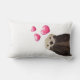 Ein Kissen aus Lendenwirbel mit einem Bild eines niedlichen Otters mit nach oben schwebenden Herzen. Die Herzen sind rosa und chubby mit einem glänzenden Spiegelbild. Dieser Otter ist mit seinen Pfoten, die unter seinem furiosen kleinen Kinn ruhen, sehr schön. Sein Fell sieht nass aus, wenn er im Wasser hängt.