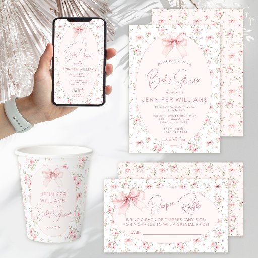 Pink Shabby Chic Roses Cute Bow Baby Girl ShowerDesignt von Ramune Freze