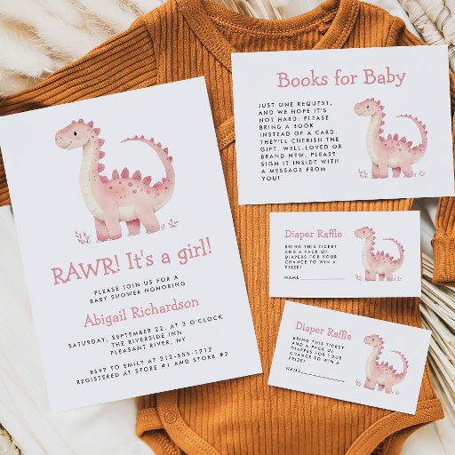 Cute Pink Watercolor Dinosaur Girl Baby ShowerDesignt von Akhates Designs