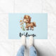 Türmatte mit einer ansprechenden Abbildung. Ein kleines braunes Pony, das gerne Gänseblümchen isst.