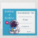 Ein farbenfroh gestaltetes Lesekonzept, das von einem Lehrer für eine Präsentation in Schulklassen oder Schulversammlungen verwendet werden kann. Dieses blaue Astronautenzertifikat zeigt ein Bild eines Astronauten und kann personalisiert sein, den Namen des Schülers und seine persönliche Leistung einzubeziehen. Das Datum und der Name des Lehrers können ebenfalls personalisiert sein. Einfach und einfach auszufüllen. Die Ressource des guten Lehrers.