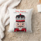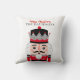 Ein lustiger Nussknacker Weihnachtswerfen Kissen. Persönlich für ein Geschenk oder für Ihre eigene Weihnachtsdekoration. Personalisieren Sie es mit Ihrem Gruß und Namen. Entworfen für Sie von BlackBerry Boulevard.