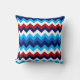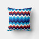 Ein 16" x 16" Kissen mit einem farbenfrohen, niedlichen Muster-Design von roten, weißen und blauen Chevronen.