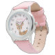 Diese niedliche Kinderuhr bietet eine wunderschöne Blume an Hirschen und Aquarellen und ist leicht lesbar. Dieses hübsche, rosa Blumendesign bietet auch einen Platz, wo Sie Ihren Mädchennamen hinzufügen können. Das perfekte Rentierdesign für Ihre Kleinen!