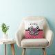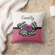 Was Mädchen kann diesem niedlichen rosa-weißen Polka Dot Quadratwurf Kissen mit einem trendigen schwarz-weiß Zickzack Bogen und einer schicken lila Band Rose widerstehen. Es ist einfach, dieses rosa und lila Retro trifft auf modernes Design, indem Sie den Namen Ihres Teenagers in den Textvorlagenbereich. Flachdruckbild, KEIN tatsächliches Rosettenband und Bogen.