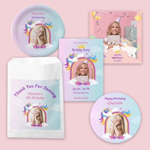 Niedlich rosa und lila Einhornmassage Foto Geburts Geschenktütchen