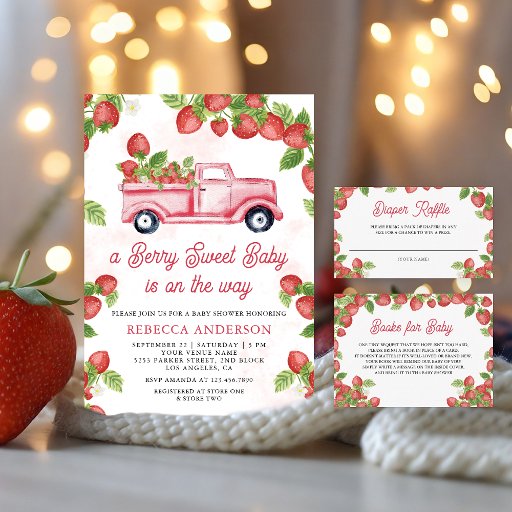 Niedlich Strawberry Truck Berry Sweet Baby Dusche All In One Einladung