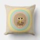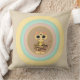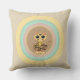 Modekissen mit niedlicher Tigerkatze aus bunten Pastellkreisen auf beigem Hintergrund.
