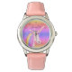 Kinderuhr aus Edelstahl mit rosa Lederarmband