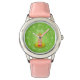 Persönlich, indem Sie Ihren Namen zu dieser niedlichen Ölmalerei Armbanduhr mit einem kleinen Mädchen mit blonden Haaren tragen ein kühles Paar rosa gepanzerten Baby-Bloomers und rote Schuhe mit einem Bouquet hübscher Wildblume vergessen Sie mir nicht hinter ihrem Rücken vor und Federgrün Hintergrund.