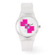 Uhr, Kinderuhr aus Edelstahluhr mit lila Lederarmband