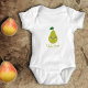 Auf der Suche nach einem Geburtsgeschenk könnte dieser Babybodyanzug, der eine grüne niedliche Birne im Kawaii-Stil illustriert, und einen anpassbaren Text unten perfekt sein.
