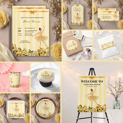 Niedliche Blumengelbe Ballerina Ribbon Babydusche EinladungNiedliche Blumengelbe Ballerina Ribbon Babydusche Einladung (Vorderseite)Niedliche Blumengelbe Ballerina Ribbon Babydusche Einladung (Rückseite)