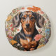 Niedliche braune Dackel und Kosmos-Blume Rundes Kissen