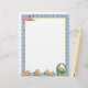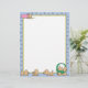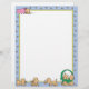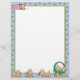 Dieser niedliche Cartoon-Briefkopf hat einen blauen Rahmen mit Pfotendrucken, die oben und beidseitig laufen, ein brauner Welpe mit seinem Kopf in einem Papierbeutel in der oberen links Ecke, und mehrere braune Welpen und ein Korb am unteren Rand.